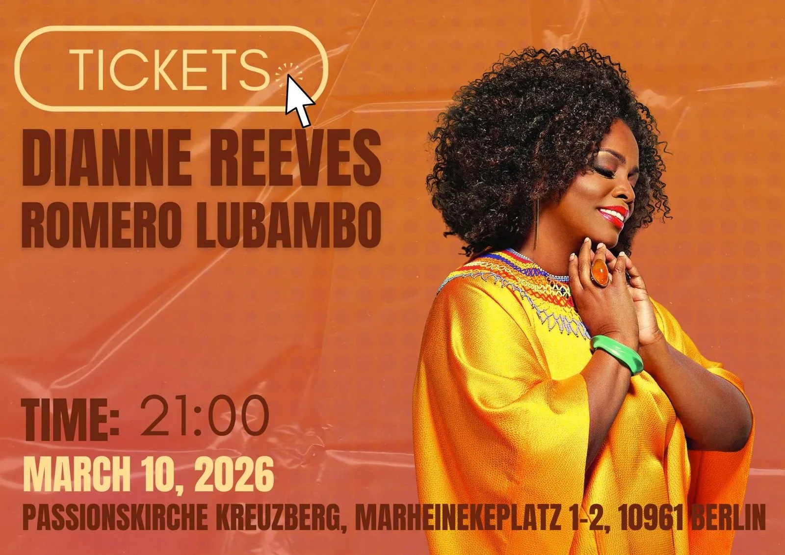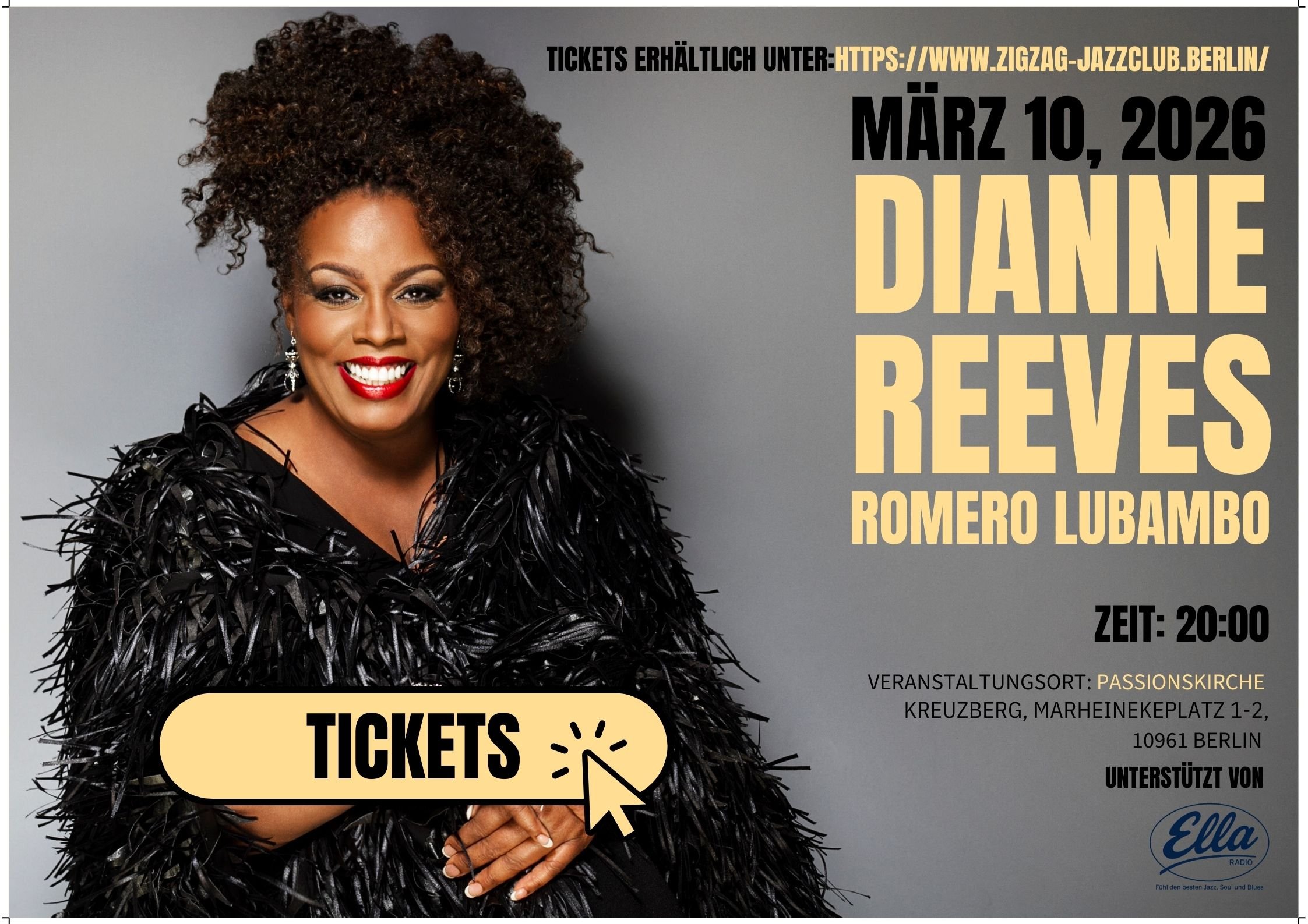 Eines DER Highlights 2026! Mit Dianne Reeves im Duo mit Romero Lubambo besucht uns eine der wohl größten Jazzkünstlerinnen aller Zeiten! - Konzert in der Passionskirche Kreuzberg